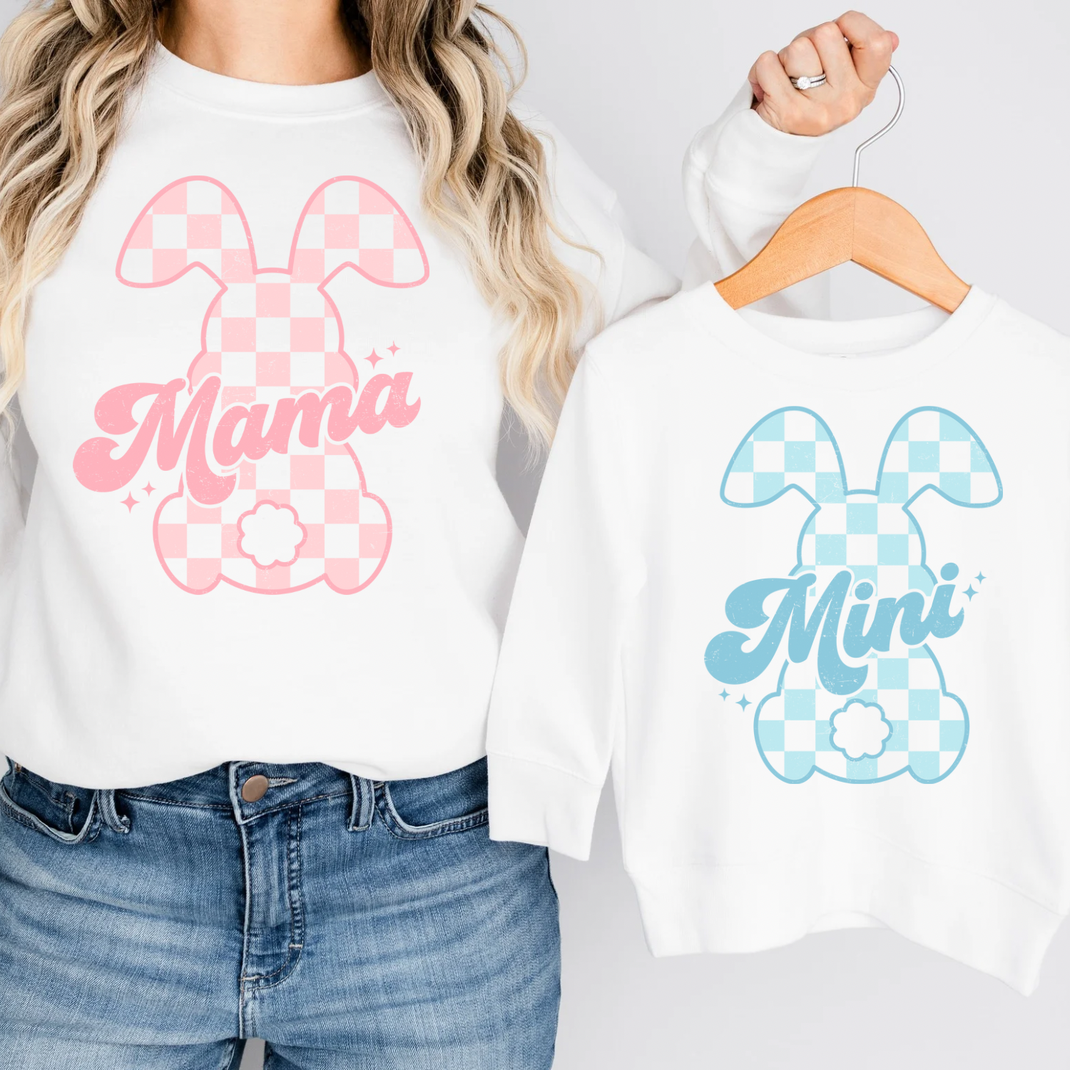 MAMA + MINI Checkered Bunny Women’s & Kids Combo Crewneck